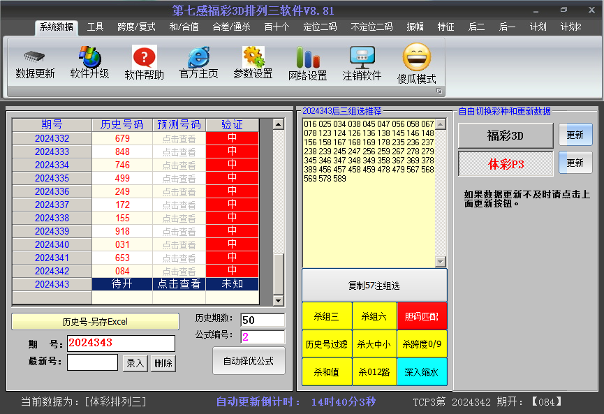2024343期使用第七感福彩3d排列三推荐软件共推荐57注组六、13注组三排列三号码,仅用于参考学习使用: