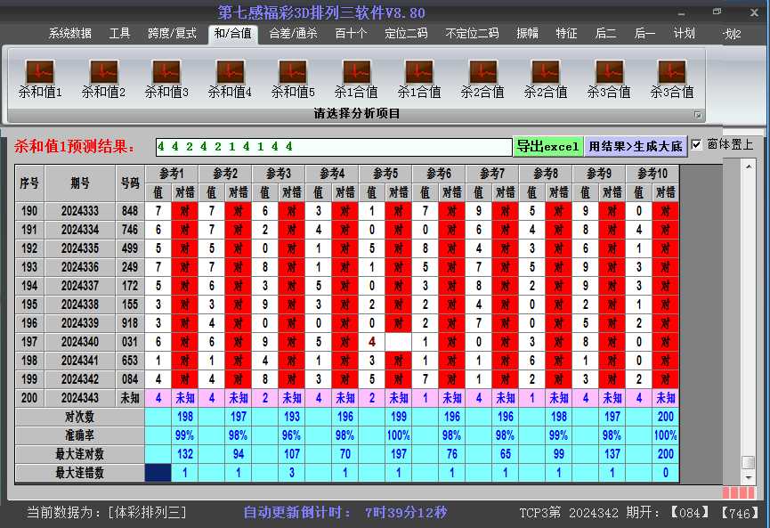 2024343期排列三杀和值参考,由第七感排列三软件的杀和值推荐分析功能生成